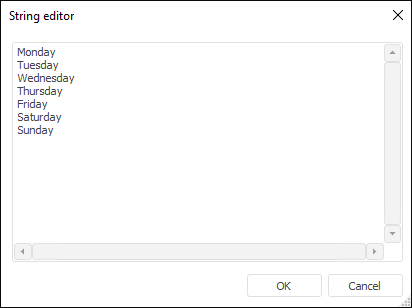 A string list is determined in the String Editor dialog box in the form design mode. Clicking the