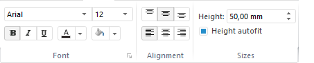 To set up title formatting in the desktop application, use the Font, Alignment, Sizes item groups on the Title ribbon tab: