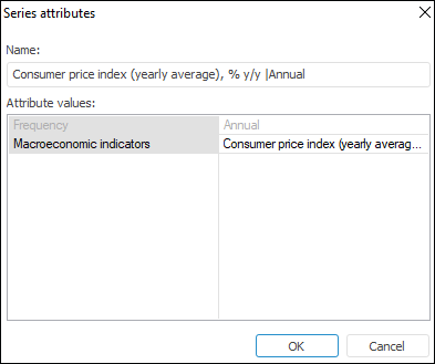 NOTE. If the data source already contains time series with specified attributes values, series observations values are displayed in the data table.