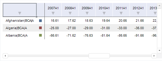 Numeric, text or symbol footnotes can be used. Custom formulas, values of one or several observation or series attributes can be used as a footnote value. A detailing positioned at the right, left, top or bottom of the data table, can be shown for footnotes.