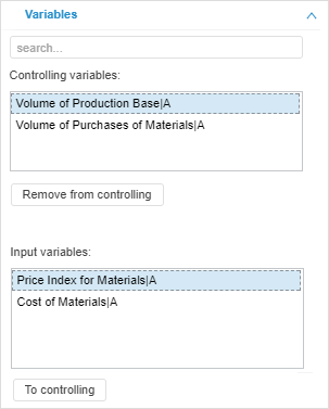 To determine the contents of controlling and input variables of criterion function, use the Variables side panel tab.