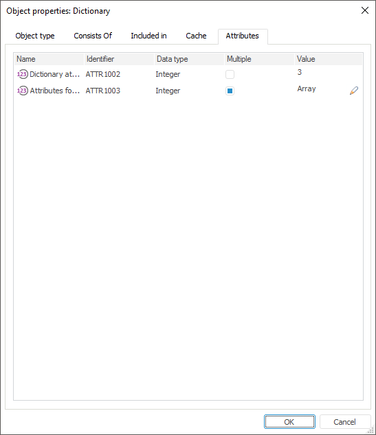 NOTE. Name, identifier and data type are determined on adding attributes for object classes and object types.
