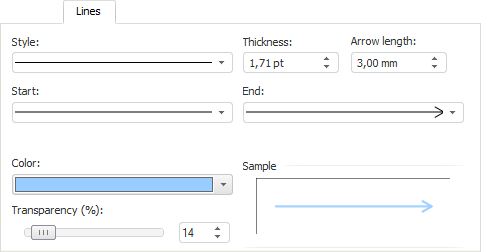 NOTE. The line thickness value can be determined in various units, but the input box of the editor stores this value in points (1/72 inches).