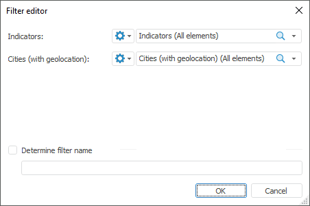 By default, filter name is generated from names of selected dimension elements. To change filter name, select the Determine Filter Name checkbox and enter a new filter name that allows for a quick search of the filter name among other filters.