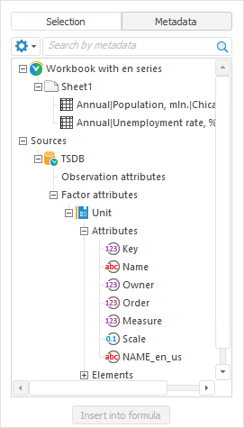 3. Click the Insert into Formula button or double-click the selected element or drag metadata into the expression area.