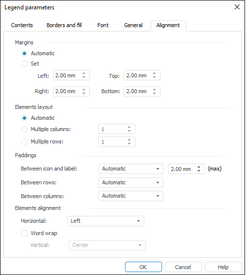 To set up alignment of the common legend, go to the Alignment tab in the Legend Parameters dialog box: