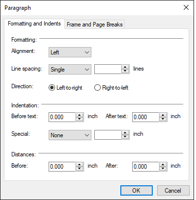 To set up general text formatting and indents, use the Formatting and Indents tab: