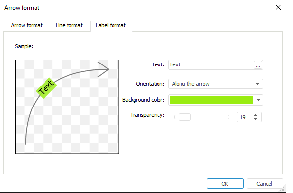 To set up arrow label format, use the Label Format tab in the Arrow Format dialog box.
