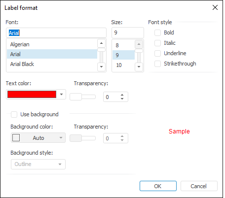 To set up label format, use the Label Format dialog box that is identical to the Font tab:
