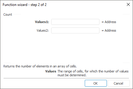 The function wizard for the Count function looks as follows:
