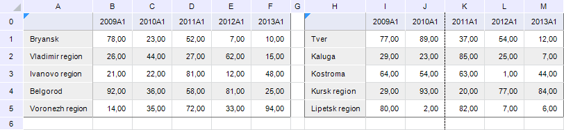 On print and/or export, data areas located on the report sheet are output on separate sheets: