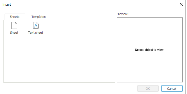 To add a sheet select Sheet on the Sheets tab in the Insert dialog box.