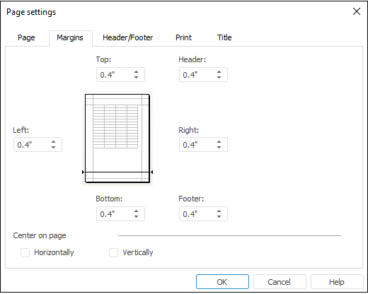 Select the method, according to which sheet objects are to be centered, in the Center on Page parameters group: