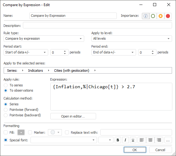 Set frequency of time series observation change between different levels. Use the If the Value parameter group: