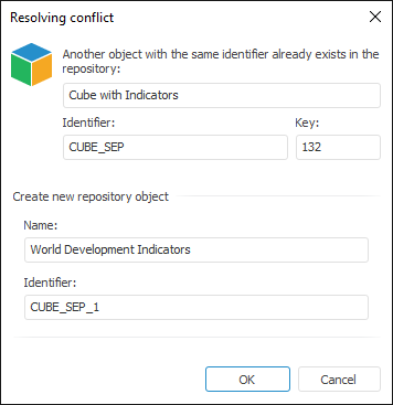 Corresponding object is controlled by VCS. The conflict occurs if the update contains objects added to version control system. To resolve the conflict, click the hyperlink in the Conflict box and confirm the update: