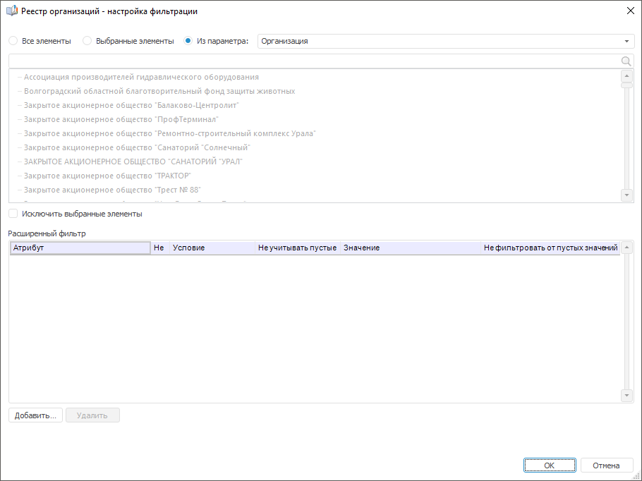 Для выбора элементов измерения, по которым будет рассчитываться блок, используйте диалог «Настройка фильтрации»: