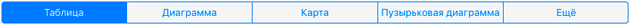 Таблица | Диаграмма | Карта | Пузырьковая диаграмма | Пузырьковое дерево | Плоское дерево | Настройка визуализаторов