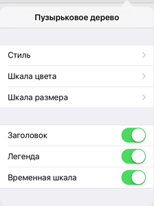 Для настройки параметров пузырькового дерева нажмите кнопку  в правом верхнем углу страницы экспресс-отчёта или аналитической панели.