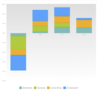 Гистограмма с накоплением. Отображает значения с накоплением. Позволяет оценить вклад каждого значения в общую сумму;