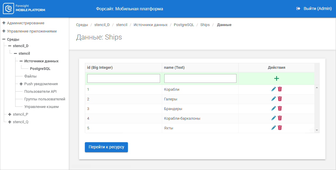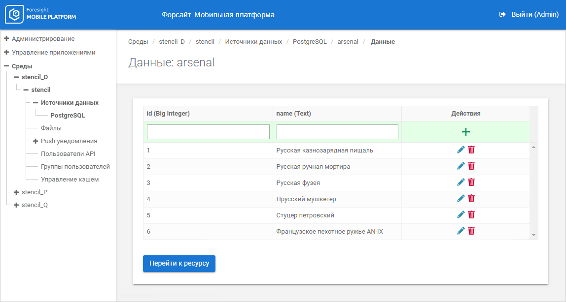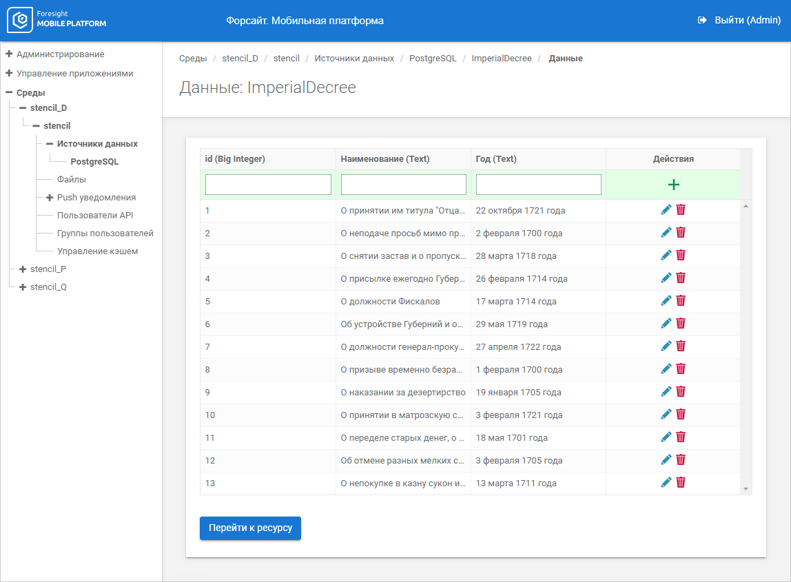 Подключите в проекте источник данных PostgreSQL, добавьте учётные данные и создайте ресурсы без кэширования с названиями: