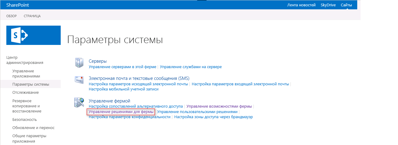Следующим этапом активируйте развернутые решения на портале Microsoft SharePoint.