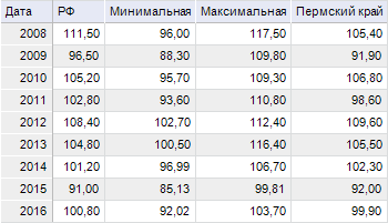 Для примера отображения гистограммы с интервалами колебаний, используем исходные данные «Реальная среднемесячная заработная плата работников, в % к предыдущему году»: