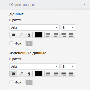Для настройки оформления данных в таблице используйте вкладку «Область данных» на боковой панели.
