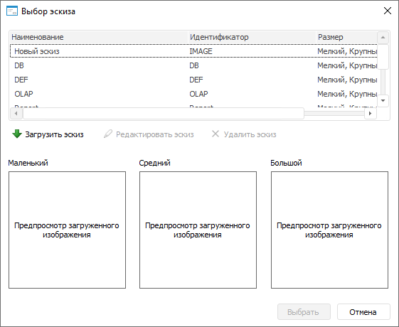 Эскиз (предпросмотр объекта). Изображением объекта в рабочей области веб-приложения будет миниатюра объекта, открытого на просмотр;