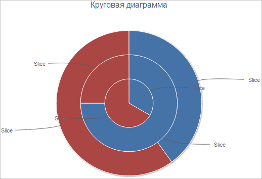 Теперь изменим значение параметра seriesAsRings на false и снова выполним пример. В результате ряды диаграммы будут отображены в виде секторов: