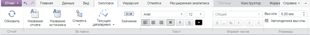 Для выполнения примера необходимо наличие на html-странице компонента ExpressBox с наименованием «expressBox» (см. «Пример создания компонента ExpressBox»). Для появления вкладки «Заголовок» необходимо нажать на кнопку «Заголовок» на вкладке «Главная». Проверяем, отрисованны ли элементы из вкладки ленты инструментов «Заголовок», если элементы не отрисованы, то отрисовываем их: