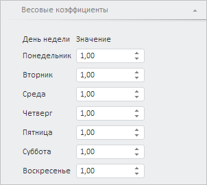 В результате выполнения примера была отображена панель «Весовые коэффициенты»: