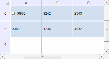 Для выполнения примера необходимо наличие на html-странице компонента TabSheet с наименованием «tabSheet» (см. «Пример создания компонента TabSheet»). Зафиксируем первую строку и первый столбец таблицы, а затем прокрутим её к строке с индексом 3 и к столбцу с индексом 2. Далее определим индексы первого столбца и строки, начиная с которых выполнена прокрутка, и индексы последнего столбца и строки, к которым таблица была прокручена: