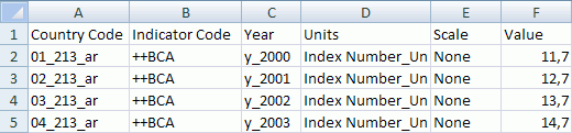 Для выполнения примера предполагается наличие базы данных временных рядов с идентификатором «OBJ_FC» и файла экспорта показателей «C:\Fixed.xlsx». Также в репозитории должен присутствовать репозиторий НСИ с идентификатором «RDS_REPO», в данном репозитории предполагается наличие справочников с идентификаторами «DICT_CTR», «DICT_IND» и «UNITS». В базе данных временных рядов атрибут «COUNTRY» является ссылкой на справочник «DICT_CTR», атрибут «INDICATOR» - ссылкой на справочник «DICT_IND», а единицы измерения ссылаются на справочник «UNITS».