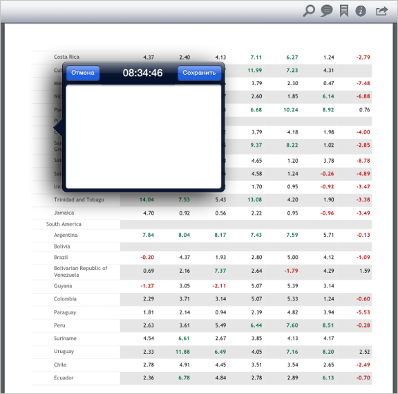 MAProceduralReportDataViewController<MADataViewControllerProtocol> *contr = (MAProceduralReportDataViewController<MADataViewControllerProtocol> *)[(MAProceduralReportViewController *)m_controller activeDataViewController]; // Создаём новую заметку Note *note = [Note new]; [note initWithText:@"Новая" offset:CGPointMake(10, 20)]; [note setText:[NSString stringWithFormat:@"%@ заметка", [note text]]]; [note setOffset: CGPointMake([note offset].x * 10, [note offset].y * 10)]; [note setPage:[contr pagesCount] - 1]; // В качестве текущего указываем время 12:33:05 NSDateComponents *comps = [NSDateComponents new]; [comps setHour:12]; [comps setMinute:33]; [comps setSecond:5]; NSCalendar *gregorian = [NSCalendar currentCalendar]; NSDate *date = [gregorian dateFromComponents:comps]; // Устанавливаем время последнего изменения заметки [note setTimestamp:[date timeIntervalSince1970]]; // Определяем диалог для создания и редактирования заметки AddNoteDialog *noteDialog = [[AddNoteDialog alloc] init]; [noteDialog setDelegate:contr]; // Делегат [noteDialog setPoint:[note offset]]; // Расположение заметки [noteDialog setTimestamp:[note timestamp]]; // Время создания заметки [noteDialog setText:[note text]]; // Текст заметки [noteDialog setMode: kNoteDialogNewNote]; // Редактируем заметку [noteDialog setNoteIndex:1]; // Индекс заметки в массиве всех заметок // Обновляем диалог [noteDialog refresh]; // Устанавливаем размер содержимого в всплывающем окне [noteDialog setContentSizeForViewInPopover:CGSizeMake(300.0, 200.0)]; // Создаём всплывающее окно UINavigationController *navController = [[[UINavigationController alloc] initWithRootViewController:noteDialog] autorelease]; UIPopoverController *popoverController = [[UIPopoverController alloc] initWithContentViewController:navController]; popoverController.delegate = contr; // Изменяем текущую страницу регламентного отчёта [contr jumpToPage:[note page]]; // Определяем содержимое всплывающего окна CGPoint offset; // Определяем отступы всплывающего окна offset.x = note.offset.x * [contr pdfView].scrollView.zoomScale; float pageOffset = [note page]*[contr pdfView].scrollView.contentSize.height / [contr pagesCount]; offset.y = (note.offset.y + pageOffset)* [contr pdfView].scrollView.zoomScale; // Отображаем всплывающее окно [popoverController presentPopoverFromRect:CGRectMake(offset.x, offset.y, 1, 1) inView:[contr pdfView].scrollView permittedArrowDirections:UIPopoverArrowDirectionAny animated:YES];