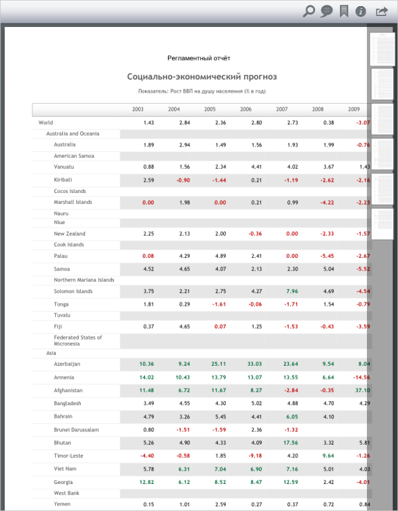 В результате выполнения примера на экране мобильного устройства будет отображен регламентный отчет, для которого дополнительно отрисовано представление для выбора страниц: