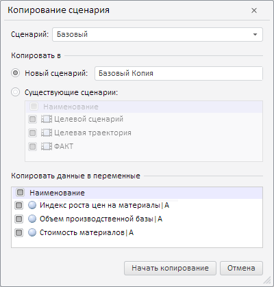 Для работы со сценариями моделирования используйте диалог «Управление сценариями».