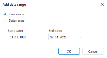 A data range is a subset of time series database data determined by specifying selection for a dimension or a time series calendar. Data ranges are contained in the menu with the same name.