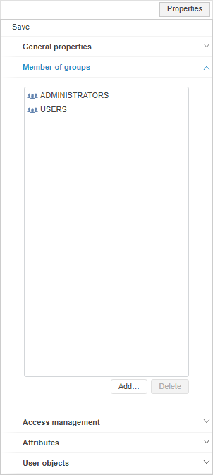 To add a group, into which the user is included, click the Add button. After that the Select Users and Groups dialog box opens in the desktop application or the Search Users and Groups dialog box in the web application.