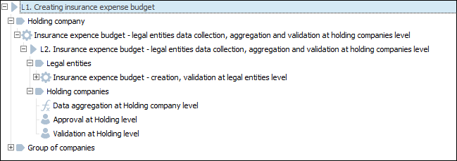 The Insurance Expense Budget - Collecting legal Entities Data, Aggregation, and Approval at Holding Level subprocess with manual startup.
