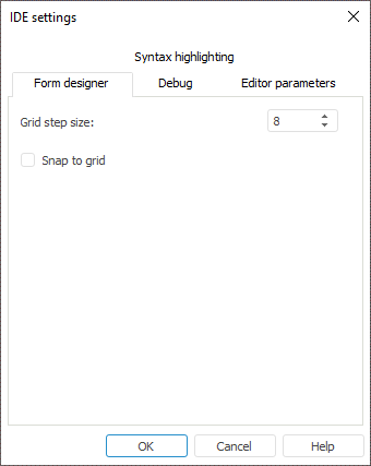 On selecting the Snap to Grid checkbox, on placing components on the form and resizing them using the mouse, they are snapped to the grid nodes. To set up precisely location and size of the components using the mouse, hold the ALT key.
