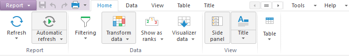 The ribbon enables the user to quickly find necessary commands. The commands are grouped logically and displayed on tabs. Each tab is related to the type of executed operation, for example, working with data or setting up page layout.