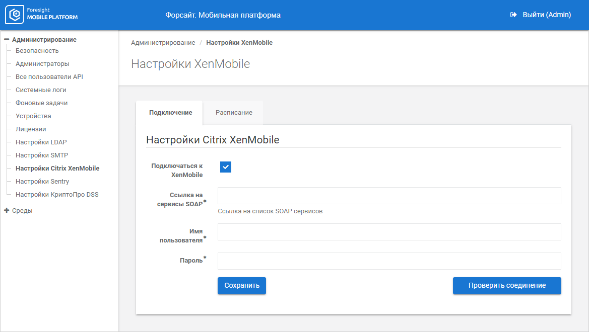 After this the synchronization schedule is set to load a list of user mobile devices between Citrix XenMobile and the platform.