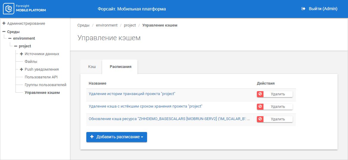 Delete Outdated Cache. Set a schedule to delete outdated cache for all existing caches that enables the user to avoid constant increase of mobile platform database size. Cache validity is set on resource import. All outdated caches can also be deleted manually.
