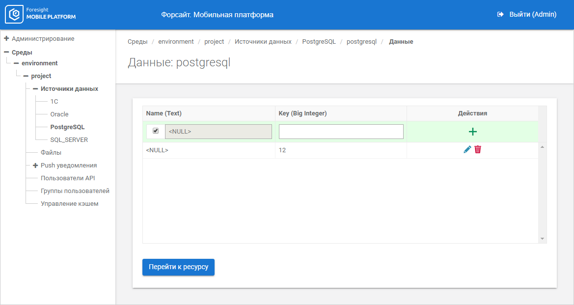 Click the Go to Resource button to go to the mode of editing PostgreSQL resource parameters.