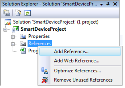 3.1. Select the References item in the Solution Explorer dialog box and select the Add Reference context menu item: