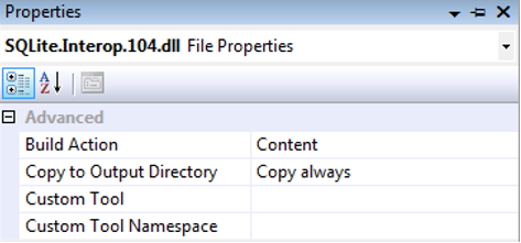 4.4. Go to the Properties dialog box and specify the Content value in the Build Action box, specify the Copy Always value in the Copy to Output Directory box: