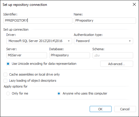 To set up repository connection and work with it, use the Parameters dialog box or determine platform settings from file.