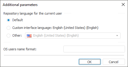 To set up parameters of the current open repository, use the Parameters dialog box.