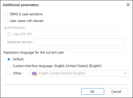 The Additional Parameters dialog box may also contain controls to determine specific settings depending on the driver type used for connection: