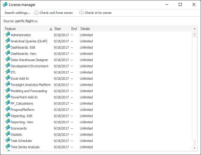Select the Foresight Analytics Platform 9.2 > License Manager item in the Windows main menu.